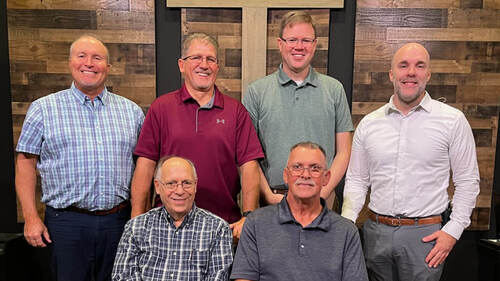 Front row: (L to R) New elders, Don Fry and Danny Morris. Back row: (L to R) CLB President Paul Larson, Elder Garth Rehberg, Pastor Jeff Olsen, and Director of North American Mission Brandon Pangman.
