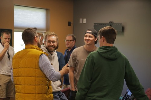 CLB President Paul Larson facilitates a discussion with Dr. Troy Tysdal (President of Lutheran Brethren Seminary), Dan Venberg (Director of International Mission), and Rev. Brandon Pangman (Director of North American Mission).