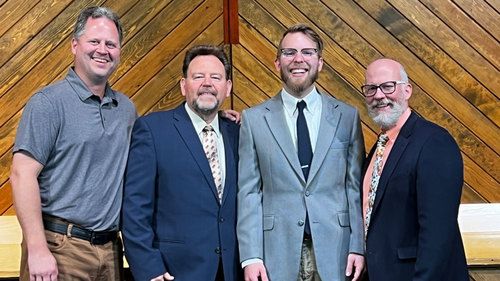 L to R: Elder and member of the CLB Council of Directors Matt DeKok, Rev. Aage Larson, Pastor Drew Skog, and Elder Keith Dunham